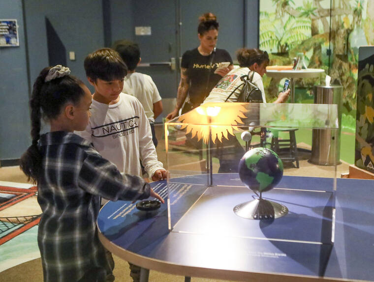 Kelsey Walling/Tribune-Herald Keiki see how the moon is positioned during each phase while exploring the traveling exhibit, "Kaulana Mahina: Look Up, Look Down, Look All Around!" on Tuesday at 'Imiloa Astronomy Center in Hilo. The exhibit engages learners of all ages to explore the mahina (moon,) connect with Hawaiian practices and utilize STEM.