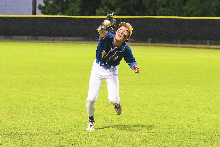 Clemson Julian’s first-base acrobatics highlighted Waiakea’s offense, and he was the keystone of the Warriors’ highly cohesive defense. The junior dropped to the splits several times — once so hard he got a cramp and needed to take a timeout — totalling a whopping 16 putouts, assisted seven times by shortstop Isaiah Justo and six by third-baseman Ivor Brooks.