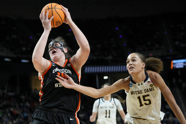 ALBANY, N.Y. — Timea Gardiner scored 21 points, Raegan Beers added 18 points and 13 rebounds and Oregon State frustrated Notre Dame star Hannah Hidalgo to beat the Irish 70-65 on Friday and advance to their first regional final in eight years.