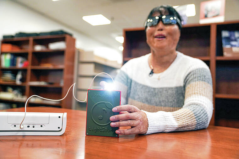 The Perkins Library — associated with the Perkins School for the Blind in Watertown, Massachusetts — plans to broadcast the changing tones of the LightSound device over Zoom for members to listen online and by telephone, said outreach manager Erin Fragola.