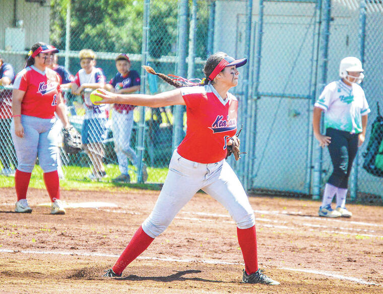 CONNOR WHITT/Tribune-Herald Kea‘au’s pitcher throws at Konawaena during a game on Saturday in Puna.
