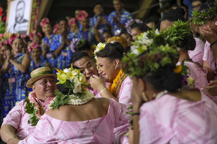 Adorned with a lei of 30 strands of pikake — one strand for each year since her reign — Tracie Lopes stood by the musicians’ pit stage-side with a wide smile on her face as her daughter danced her hula ‘auana (modern hula).