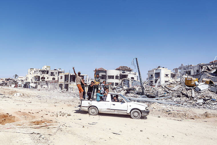 AP video in Khan Younis showed some people returning to a landscape marked by shattered multistory buildings and climbing over debris. Cars were overturned and charred. Southern Gaza’s main hospital, Nasser, was in shambles.