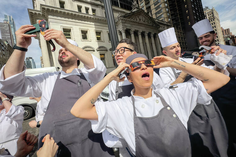 The show got underway in the Pacific before noon EDT. As the darkness of totality reached the Mexican resort city of Mazatlán, the faces of spectators were illuminated only by the screens of their cellphones.