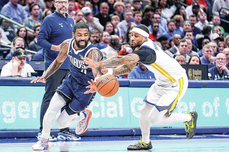DALLAS — Kyrie Irving and Luka Doncic draped their arms over each other in a pseudo-embrace, smiles of exhaustion on the faces of the co-stars of the Dallas Mavericks.