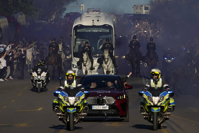 There was no noticeable change to the security plans outside the Santiago Bernabeu Stadium in Madrid, with an extensive police presence already expected ahead of the match. There were no early reports by local authorities of unusual security incidents.