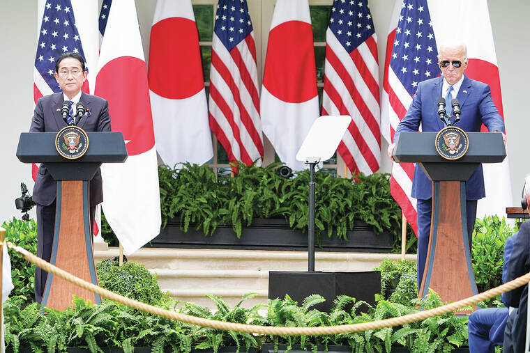 WASHINGTON — President Joe Biden praised Prime Minister Fumio Kishida’s “bold” leadership on a series of global crises as he welcomed the Japanese leader to the White House on Wednesday for wide-ranging talks that touched on the delicate security situation in the Pacific, the war in Ukraine, the Israel-Hamas conflict and more.