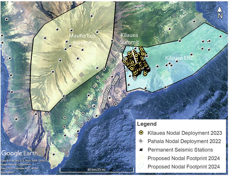 Finally, HVO and collaborators at the University of Miami will put out another 50 seismic nodes across Mauna Loa’s summit and rift zones in summer 2024 to gain a greater understanding of how much magma is stored in these regions and how they might be connected to the surface.