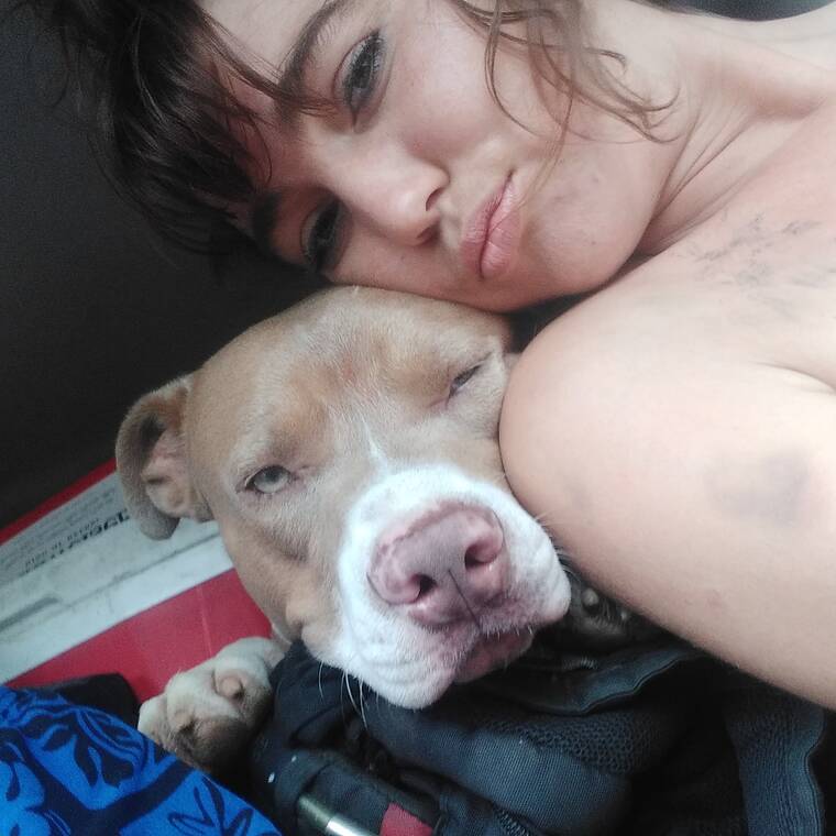 Facebook photo Cora Gibby and a dog fitting the description of the canine police say she abused in Kona.