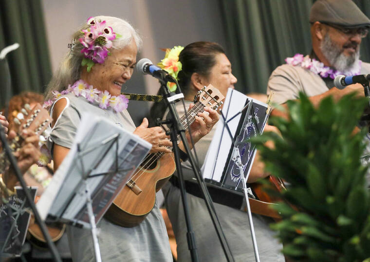 Seniors who have been learning how to play the ukulele joined together for the Hawaii Senior Ukulele Festival at Sangha Hall. The annual event gives kupuna the chance to socialize, learn more music and perform in front of hundreds of people.