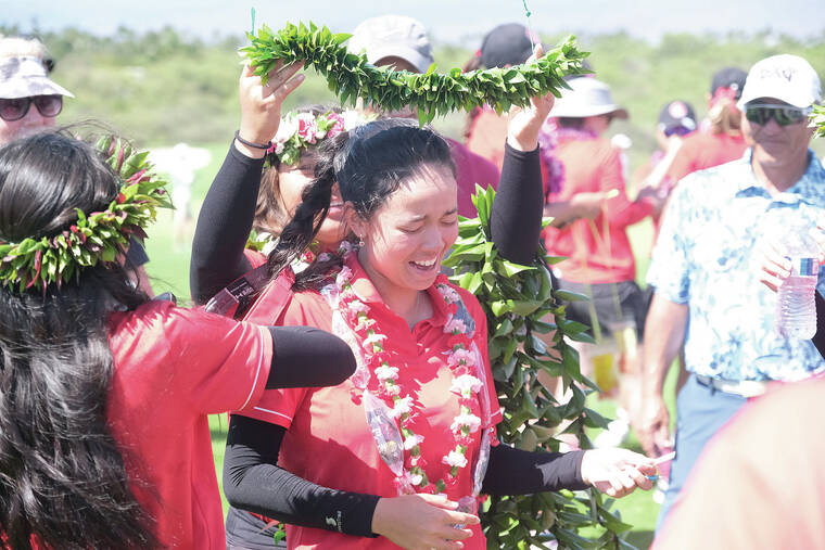 Saludares — a Waiakea High alumnus — finished her third round early in the afternoon. Even though everyone else on the course seemed to know that she had won, she didn’t realize until she saw her mother crying.
