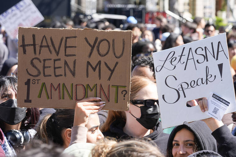 The university’s decision was met with praise from pro-Israel organizations but condemnation from free speech groups and the Council on American-Islamic Relations. Students and faculty marched across campus Thursday in silent protest of the university’s decision.