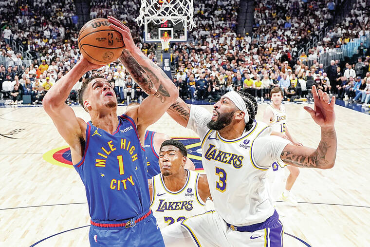 DENVER (AP) — Unlike their crowd that drowned out the Los Angeles Lakers’ pregame introductions, the defending NBA champion Denver Nuggets were a little late to the playoff party Saturday night.