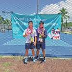 Waiakea’s sibling duo of No. 1 seed Dayne Kunimoto and Kaiden Kunimoto took the crown in the boys doubles title, beating No. 2 Kealakehe’s pair of Keoni Roth and Parker Felte in two sets — 6-2 and 7-5. The Kunimoto brothers dominated their way to the podium finish, beating Hilo’s Drew Nakamura and Aidan Carvalho-Fukunaga in the semfinal round (6-0, 6-0), Konawaena’s Caiden Mireles and Makana Sanders in the quarterfinals (6-0, 6-0) and Hilo’s Eli Yamaki and Caiden Alip in the round of 16 (6-0, 6-0). The pair had a first-round bye due to high seeding.