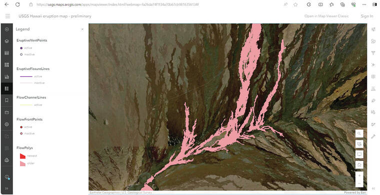 To access the new ArcGIS Online web map, please visit the HVO website at www.usgs.gov/hvo, where it is linked as the “Eruption Response Web Map” under “Quick Links.” Stay tuned for further developments, because there are plans to add the data to the interactive map on the HVO website homepage in the near future.