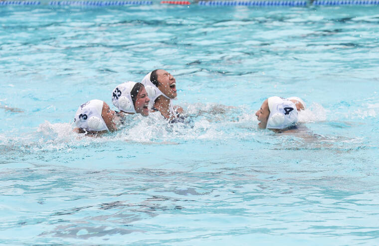 The Kamehameha Schools – Hawai‘i girls water polo team won its third straight BIIF title, defeating Hawaii Preparatory Academy 7-5 in the final round of the Central Pacific Bank/BIIF playoffs on Saturday in Puna.
