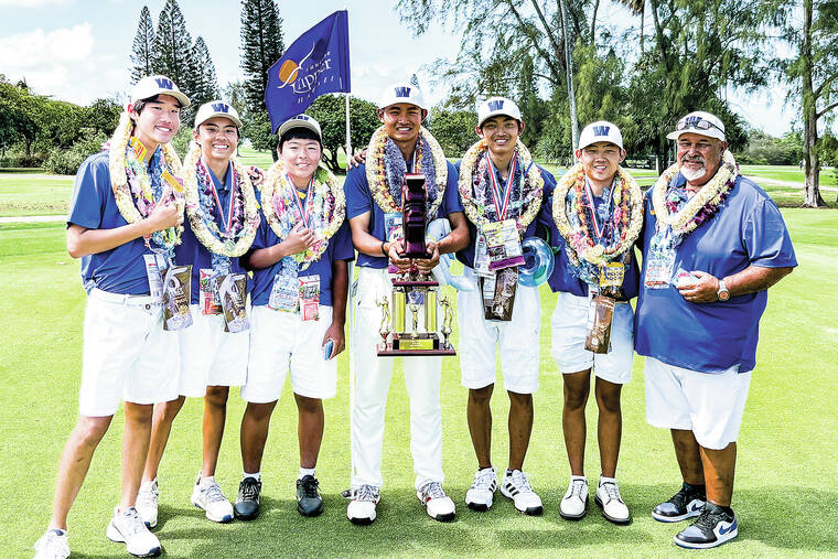 WHS’ two graduating seniors — Noah Otani and Ryder Ng — both signed letters of intent earlier this school year to play college golf. Otani will representing his hometown at UH-Hilo — where his sister, Elle, also plays — and Ng will move to Oregon to play for Linfield University.