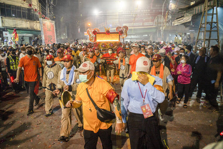 When the pilgrimage reached the Beigang Chaotian temple in southern Taiwan — its main destination before turning home — Mazu was greeted by an eruption of fireworks and gongs, and overwhelming crowds. Nearly 500,000 people turned up that day, a record, said organizers.