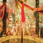 In a din of firecrackers, cymbals and horns, a team of devotees carried the shrouded wooden statue of a serene-faced woman, holding her aloft on a brightly decorated litter as they navigated through tens of thousands of onlookers.