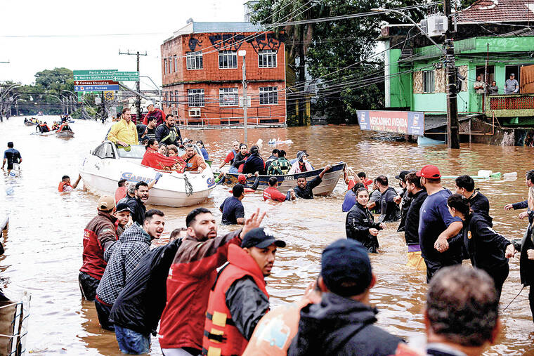 Volunteers using boats, jet skis – and even swimming – have assisted in ongoing rescue efforts. In the state capital Porto Alegre, Fabiano Saldanha said he and three friends have used jet skis to save about 50 people from flood waters since Friday in islands that are part of the city.