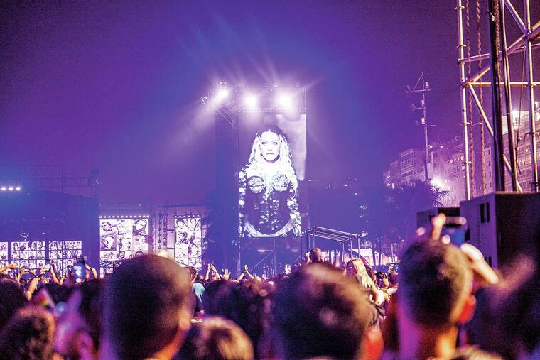 RIO DE JANEIRO (NYT) — When Madonna stepped out onto the mammoth stage constructed on Rio de Janeiro’s Copacabana Beach on Saturday night in a gleaming halo headpiece and black kimono, she was greeted by the largest live crowd of her four-decade career.