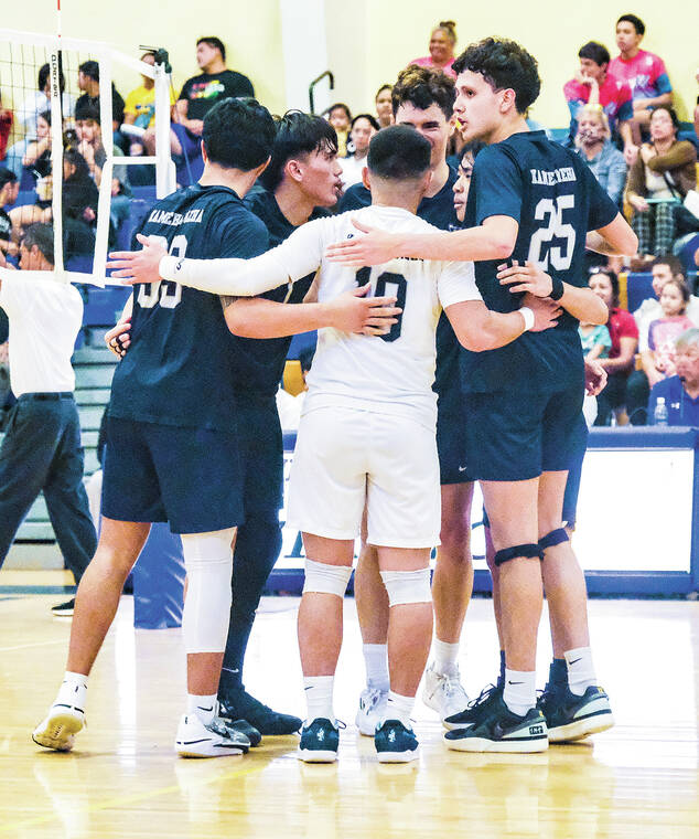 The Kamehameha Schools – Hawai‘i boys volleyball team emerged triumphant from a five-set scrap with Castle High during the first round of the Hawaii High School Athletic Association (HHSAA) Division I state championship on Monday night in Kea‘au.
