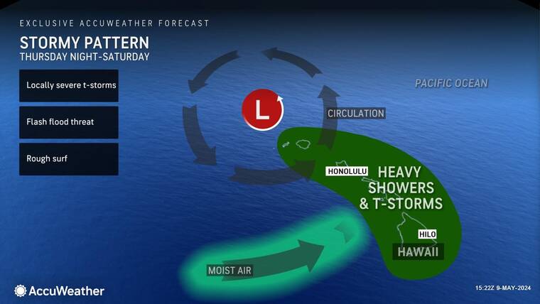 Weather watchers are warning of a strong upper-level low-pressure front forecast to move eastward across the island chain, potentially bringing severe thunderstorms and flash flooding to the Big Island as early as this afternoon.