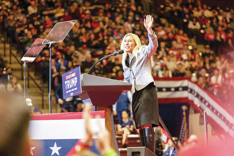 WASHINGTON — A throng of media crowded around U.S. Rep. Marjorie Taylor Greene on Wednesday evening on the steps of the U.S. Capitol, straining to hear her angry reaction after a bipartisan coalition of House members dismissed her efforts to oust Mike Johnson as House speaker.