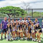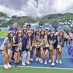 In the girls doubles field, Waiakea’s second-seeded pair of Jada Igawa and Chloe Takahashi placed fourth overall, falling to Mid-Pacific Institute’s fourth-seeded duo of Margaret Hoe and Denise Takenaka (6-4, 7-5). Earlier in the week, Igawa and Takahashi beat Kauai’s Savannah and Madison Hubbard (4-0, 4-0), Kalani’s Lexi Duldalao and Katie Wong (4-0, 4-0) and Iolani’s No. 6 Jolie Nguyen and Rylie Yamamoto (6-3, 6-3) before falling short in the semifinal match against Punahou’s No. 3 seed of Jariahlyn Rhoades and Logan Tom (6-4, 6-2). In the championship match, Rhoades and Tom beat fellow teammates Maya Eastburg and Mia Tom (6-4, 6-3).