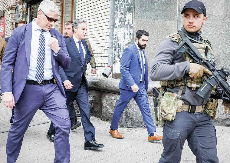 KYIV — The U.S. will stand by Ukraine until its security sovereignty is guaranteed, Secretary of State Antony Blinken pledged on Tuesday in a visit to Kyiv, at a time when Russia is mounting fresh attacks in the country’s east.