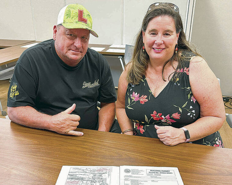 The Maui County Recovery Permit Center, which opened three weeks ago to facilitate permitting for August wildfire survivors, has issued its first building permit to a Lahaina couple to rebuild their destroyed home.