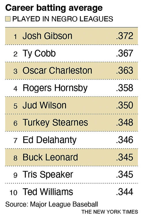 “People will be, I don’t know if upset is the word, but they may be uncomfortable with some Negro league stars now on the leaderboards for career and seasons,” said Larry Lester, a baseball writer and longtime Negro leagues researcher who served on the committee.