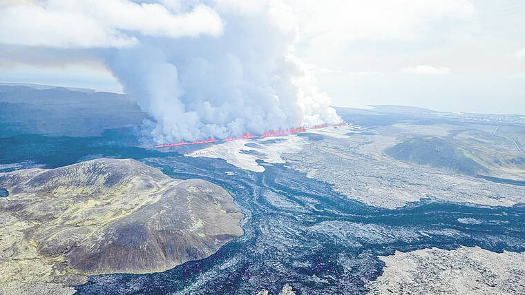 COPENHAGEN (Reuters) — A volcano south of Iceland’s capital Reykjavik spewed smoke and lava for a second day on Thursday although at a significantly slower pace, authorities said.
