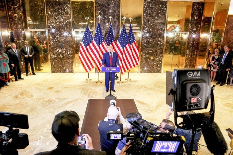 In rambling remarks at the Trump Tower lobby in Manhattan where he announced his first presidential run in 2015, Trump repeated his complaints that the trial was a “rigged” attempt to hobble his comeback White House bid and warned that it showed no American was safe from politically motivated prosecution.