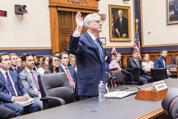 WASHINGTON — U.S. Attorney General Merrick Garland on Tuesday rejected accusations by House Republicans that he had politicized the criminal justice system in a bid to stop Donald Trump from reclaiming the White House.