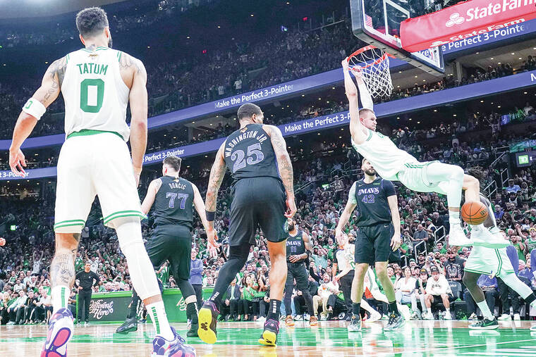 BOSTON — Kristaps Porzingis returned from a 10-game absence to record 20 points off the bench and the Boston Celtics snuffed a second-half rally to beat the Dallas Mavericks 107-89 on Thursday night in Game 1 of the NBA Finals.