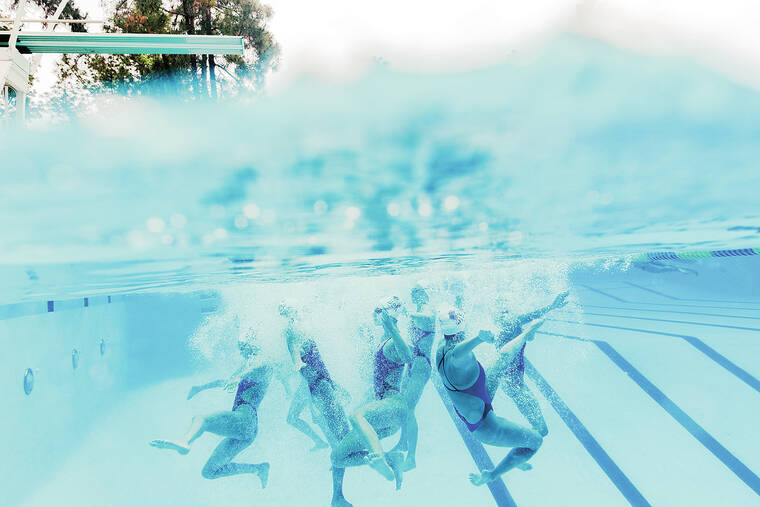 LOS ANGELES — As you watch the U.S. Artistic Swimming team practice for the Olympics — their bodies upside down, their legs scissoring in the air in perfect time, like frenzied offshore wind turbines — you will notice two things.