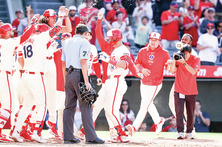 The Angels rallied from a 7-5 deficit with two runs in the eighth inning to tie the game, setting up O’Hoppe’s dramatic finish in the ninth. Kevin Pillar singled with one out against Astros closer Josh Hader, bringing up O’Hoppe, who turned on the first pitch he saw.