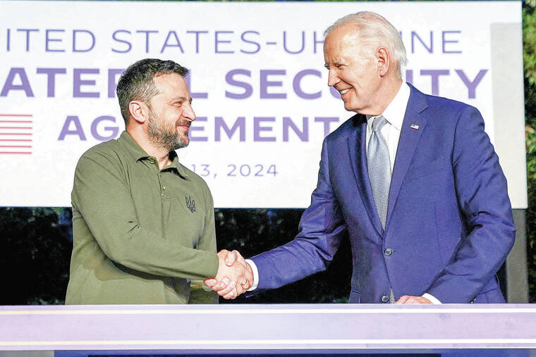 He signed a new, long-term security accord with U.S. President Joe Biden after signing a 10-year security accord with Japan, with Tokyo promising to provide Kyiv with $4.5 billion this year — underlining continued strong backing from the West.