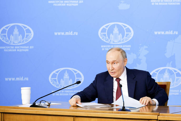 MOSCOW — President Vladimir Putin said on Friday Russia would end the war in Ukraine only if Kyiv agreed to drop its NATO ambitions and hand over the entirety of four provinces claimed by Moscow, demands Kyiv swiftly rejected as tantamount to surrender.