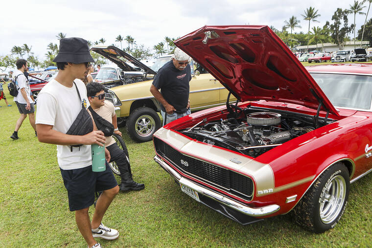 Kelsey Walling/Tribune-Herald In this file photo from July 4 last year, spectators look at the engine of a classic car during the Fourth of July Hot Rides Classic Car Expo in Hilo.