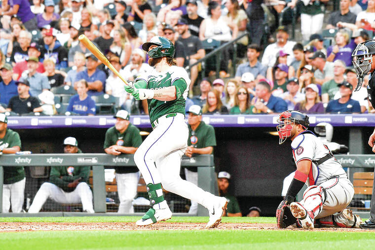 With the Rockies trailing 7-6, Hunter Goodman and Jake Cave opened the ninth with singles against Washington closer Kyle Finnegan (2-4). After failing to sacrifice, Brenton Doyle grounded a single to left, scoring Goodman with the tying run. Ezequiel Tovar single to right, loading the bases with no outs. With a 3-2 count on McMahon, Finnegan was called for a pitch-clock violation, resulting in ball four.