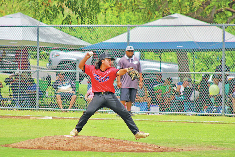 Kona pitcher Vayden Domingo starts the game on the mound for the All Stars against Hilo Little League on Friday in Pualani Park. The two teams squared off in the opening round of the Little League Hawaii District 4 Tournament for the 10-11-12s division (majors). The tournament will continue through Monday in Kailua-Kona. (Conor Langs/West Hawaii Today) ▲