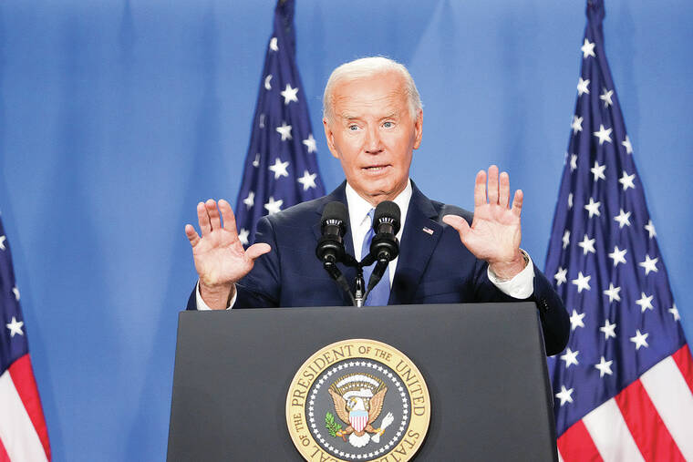 The news conference gave Biden an opportunity to tout his successes on the world stage at the close of the NATO summit in Washington, where members extended support to Ukraine to combat the invasion that Russian President Vladimir Putin launched in February 2022.