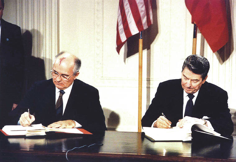 “We can be proud of planting this sapling, which may one day grow into a mighty tree of peace,” Soviet leader Mikhail Gorbachev told U.S. President Ronald Reagan in December 1987 as they agreed to dismantle the rival systems under a treaty that scrapped all ground-based shorter-range and intermediate-range (INF) nuclear and conventional weapons – those with ranges between 500 km and 5,500 km.