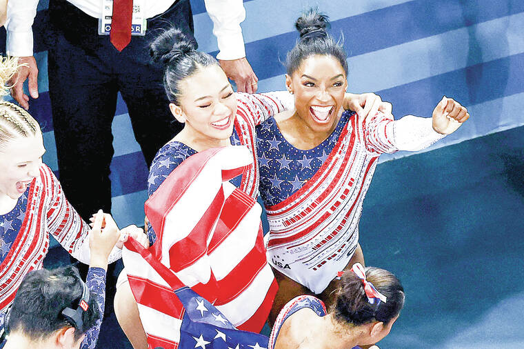 They practically skipped between rotations, smiling and waving to the very partisan USA crowd. Biles blew kisses at the camera; Jordan Chiles danced; Sunisa Lee clapped along with the music and Jade Carey looked up in the stands as fans started a USA chant.