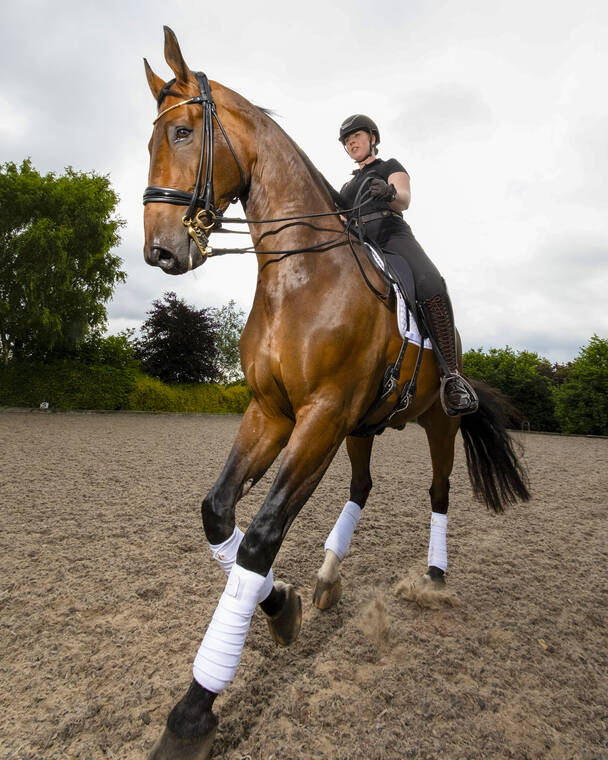 Dressage is so intense, Moody said, she trains her horses only three or four times a week, for 40 minutes a time at most. To keep her horses strong and happy outside training sessions, Moody rides them along local roads, particularly up and down hills. Some of her horses also spend time on a treadmill fitted to the base of a water-filled box (pushing against the water provides an extra challenge).