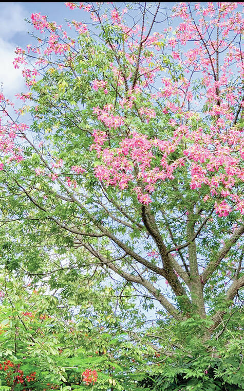 Ceiba speciosa shown here is blooming now on Walua Road in Kona. It is a close relative of the Kapok tree and blooms in the fall. It can be easily grown from cuttings. Unfortunately, it is not often carried by local nurseries. (Voltaire Moise/Courtesy photo)
