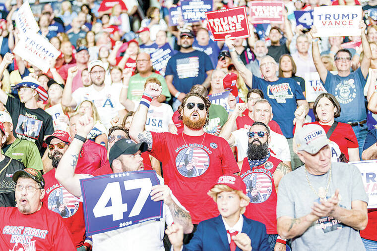Trump also continued his effort to try to peel off American Jews, a substantial majority of whom are liberal, from the Democratic Party. He claimed that Pennsylvania’s Democratic governor, Josh Shapiro, was not chosen as Harris’ running mate because of his religion.