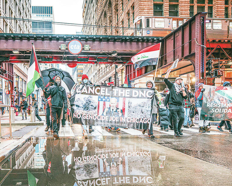 CHICAGO — As delegates arrived in Chicago on Sunday before the Democratic National Convention, protesters gathered along Michigan Avenue. On Monday, as the political show begins inside the United Center, demonstrators say they will gather by the thousands outside. And as the convention goes on, activists say, so too will the protests, every single day, showcasing divisions on the left during a week when Vice President Kamala Harris is trying to project Democratic unity and enthusiasm.
